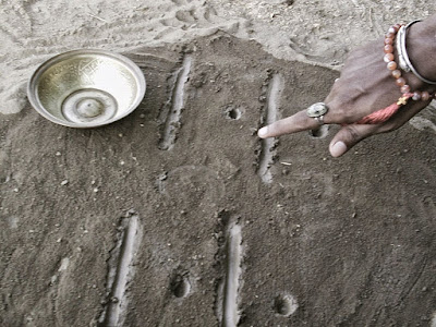 As pedras brancas e negras faziam também o papel dos traços na areia, e por sua praticidade, começaram a ser usadas também como um auxílio à Geomancia. Ao invés de riscar os traços na areia, o consulente pegava em um saco pedras brancas ou negras e fazia as combinações necessárias (de maneira semelhante às moedas do I-ching).